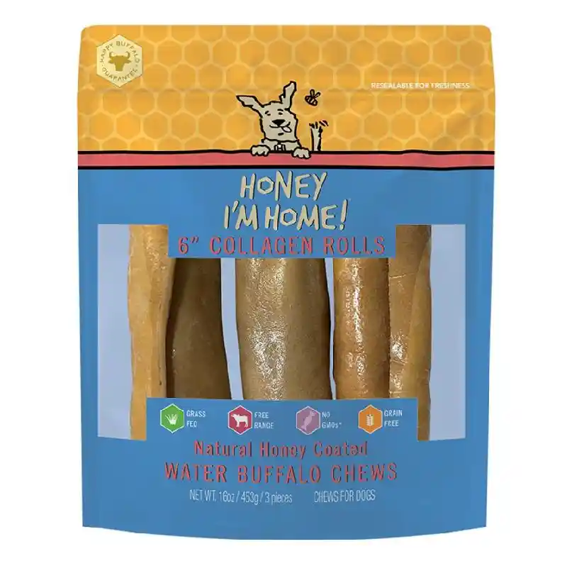 Hih Honey Coated Buffalo Treat Collagen Rolls 6" 3ct